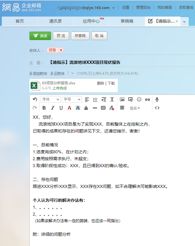 4. 如有必要,可将附件内容粘贴在邮件正文,方便领导过目。