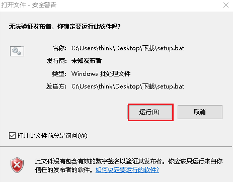 2、 下载成功后,打开setup.bat文件,并运行。
