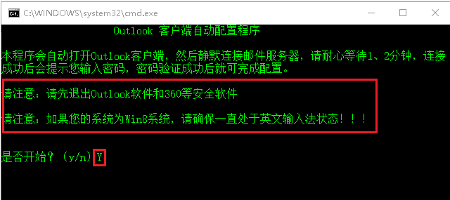 3、 在”是否开始?(y/n)”后输入“y” (不区分大小写),回车即可。