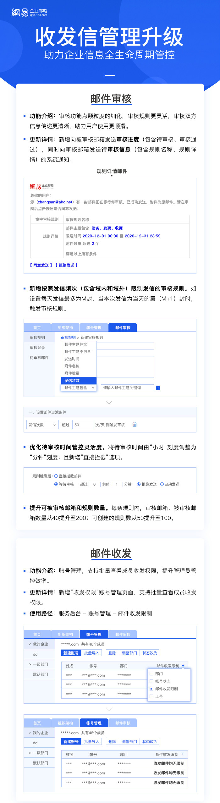 【163企业邮箱注册】收发信管理升级,助力企业信息全生命周期管控